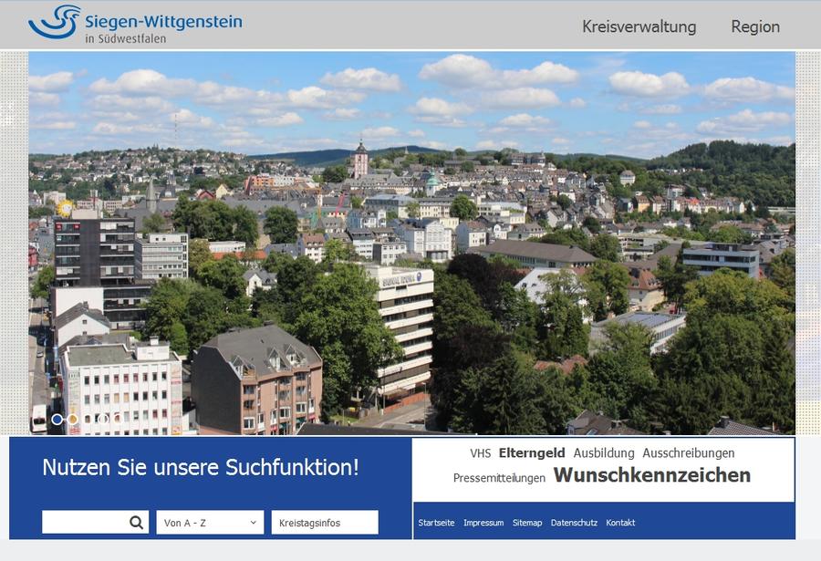 Herzlich willkommen auf der neuen Homepage des Kreises Siegen-Wittgenstein! Wir möchten Sie einladen, unser inhaltlich und optisch modernisiertes Online-Angebot kennenzulernen. Klicken Sie sich einfach durch die Menüpunkte in den Bereichen "Kreisverwaltung" und "Region". Oder nutzen Sie die komfortable Volltextsuche, um nach konkreten Inhalten zu suchen.