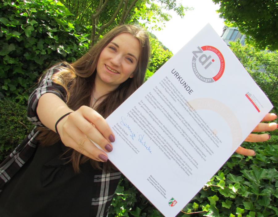 Das „zdi-Zentrum Regionalinitiative MINT Siegen-Wittgenstein“ hat erneut das zdi-Qualitätssiegel für das Jahr 2016 erhalten. Die Urkunde zur Rezertifizierung wurde von Svenja Schulze, Ministerin für Innovation, Wissenschaft und Forschung des Landes NRW, verliehen