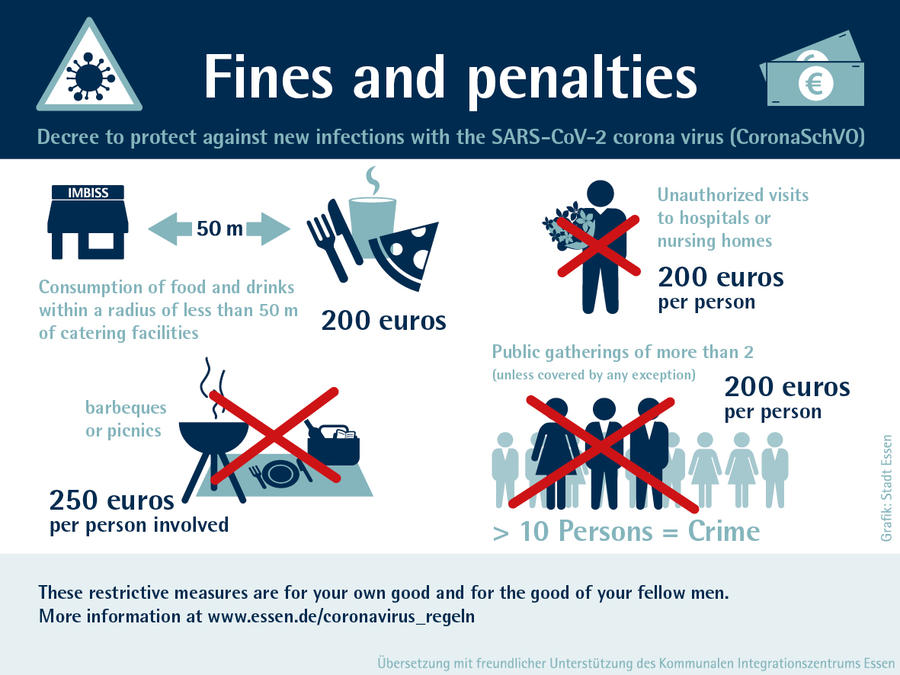 Schaubild Bußgelder/Strafen Corona Bürger englisch © Stadt Essen