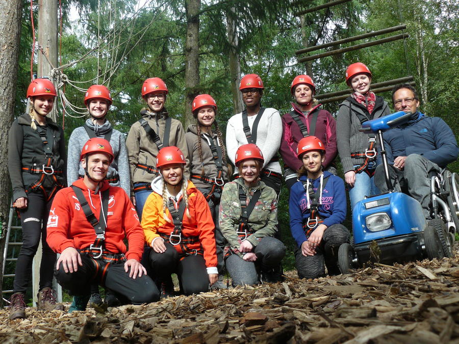 Richtig sportlich ging es im Hochseilgarten am Fischbacherberg zu, der am Mittwoch als einziger Programmpunkt anstand. Neben Team-Building-Maßnahmen wurde an zwei Stationen geklettert. Die Azubis mussten sich gegenseitig sichern und konnten direkt ein Gefühl dafür bekommen, was es bedeutet sich verantwortungsvoll gegenüber seinen Kolleginnen und Kollegen zu verhalten.