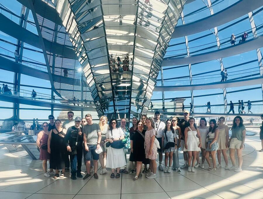 „Ich bin Olli und ich fahre euch mal eben nach Berlin,“ begrüßte der Busfahrer die Gruppe auf der Hinfahrt. Die achtstündige Busfahrt war der Auftakt von insgesamt vier Tagen, in denen die 21 Auszubildenden die Möglichkeit bekamen, die Bundeshauptstadt zu entdecken. Einige Termine und Stationen standen auf dem Plan, aber auch genügend Zeit, Berlin auf eigene Faust zu erkunden. Vor allem bei Restaurants, Bars, Biergärten und Cafés kam jede und jeder auf seine Kosten.