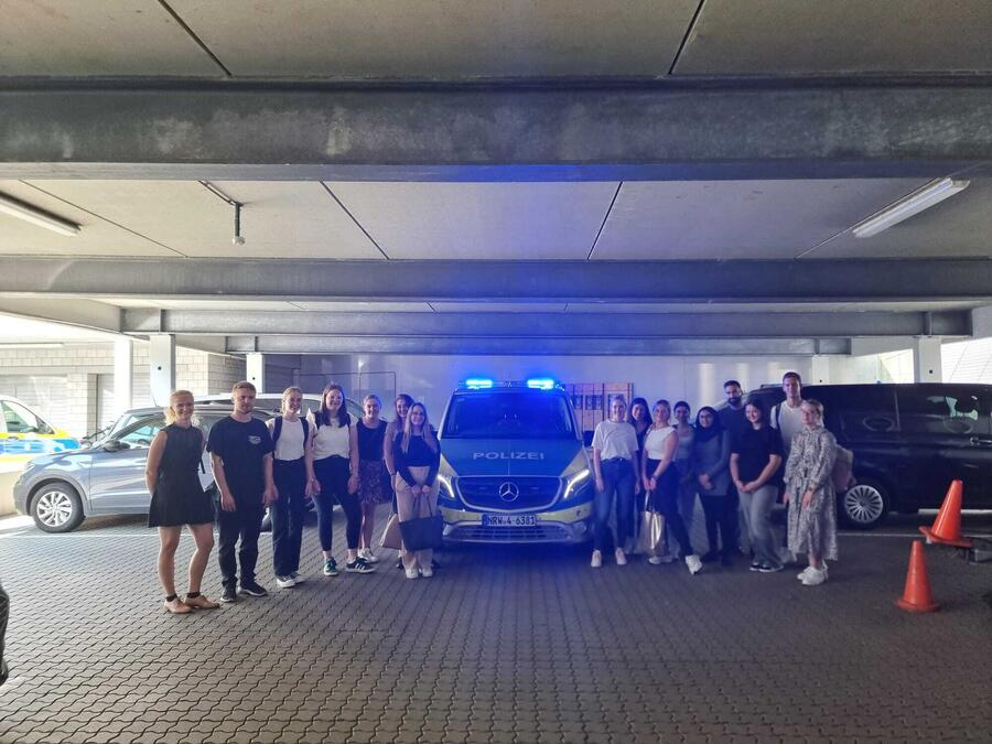 Am letzten Tag drehte sich alles nur um ein Thema: Blaulicht. In der Kreisleitstelle ging es nach einer kurzen theoretischen Einführung zunächst in die Atemschutzwerkstatt und dann runter in den Brandraum. Hier konnten sich die Azubis ein Bild davon machen, wie es abläuft, wenn Feuerwehrmänner und – Frauen den Ernstfall trainieren. Zum Abschluss der Woche ging es zur zweiten Blaulicht-Station, der Polizei. Hier wurde der ein oder andere Auszubildende dann wieder klein, als es darum ging im Streifenwagen Probe zu sitzen und das Blaulicht einzuschalten. Auch die Schießanlage ließ den einen oder anderen staunen. Die Tätigkeiten der Polizeiverwaltung als „Mannschaft hinter der Mannschaft“, wo die Auszubildenden auch während der Ausbildung eingesetzt werden können, wurden vorher natürlich erklärt. Neben dem ganzen Spaß durfte das natürlich nicht zu kurz kommen.
