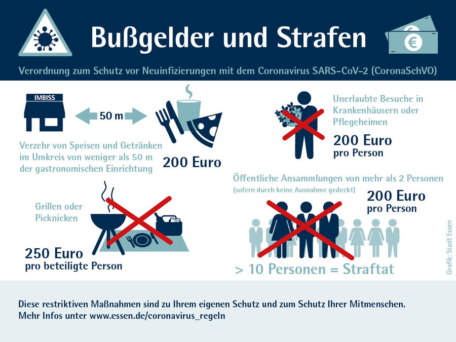 Schaubild Bußgelder/Strafen Corona Bürger deutsch © Stadt Essen