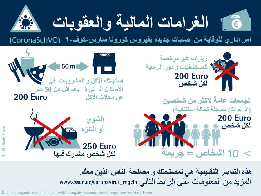 Schaubild Bußgelder/Strafen Corona Bürger arabisch © Stadt Essen