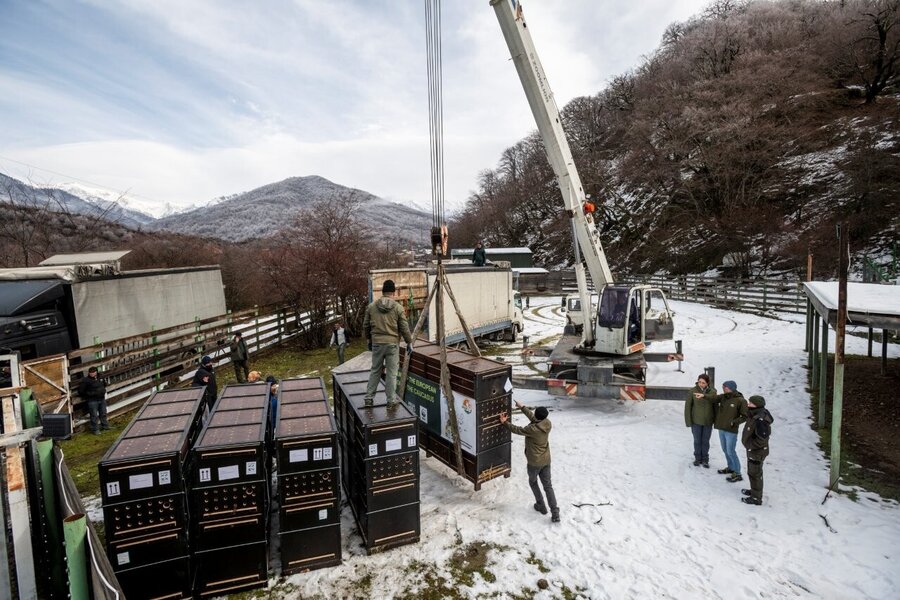 In den letzten Tagen haben sechs Wisente aus dem Projekt „Wisente am Rothaarsteig“ eine lange Reise hinter sich gebracht: Sie sind zusammen mit 12 weiteren Wisenten aus dem Tierpark Berlin in den Shahdag Nationalpark nach Aserbaidschan transportiert worden und gut und gesund in ihrem neuen Lebensraum angekommen. Die Umsiedlung wurde vom WWF Deutschland und den Zoologischen Gärten Berlin gemeinsam organisiert und fachlich eng begleitet.